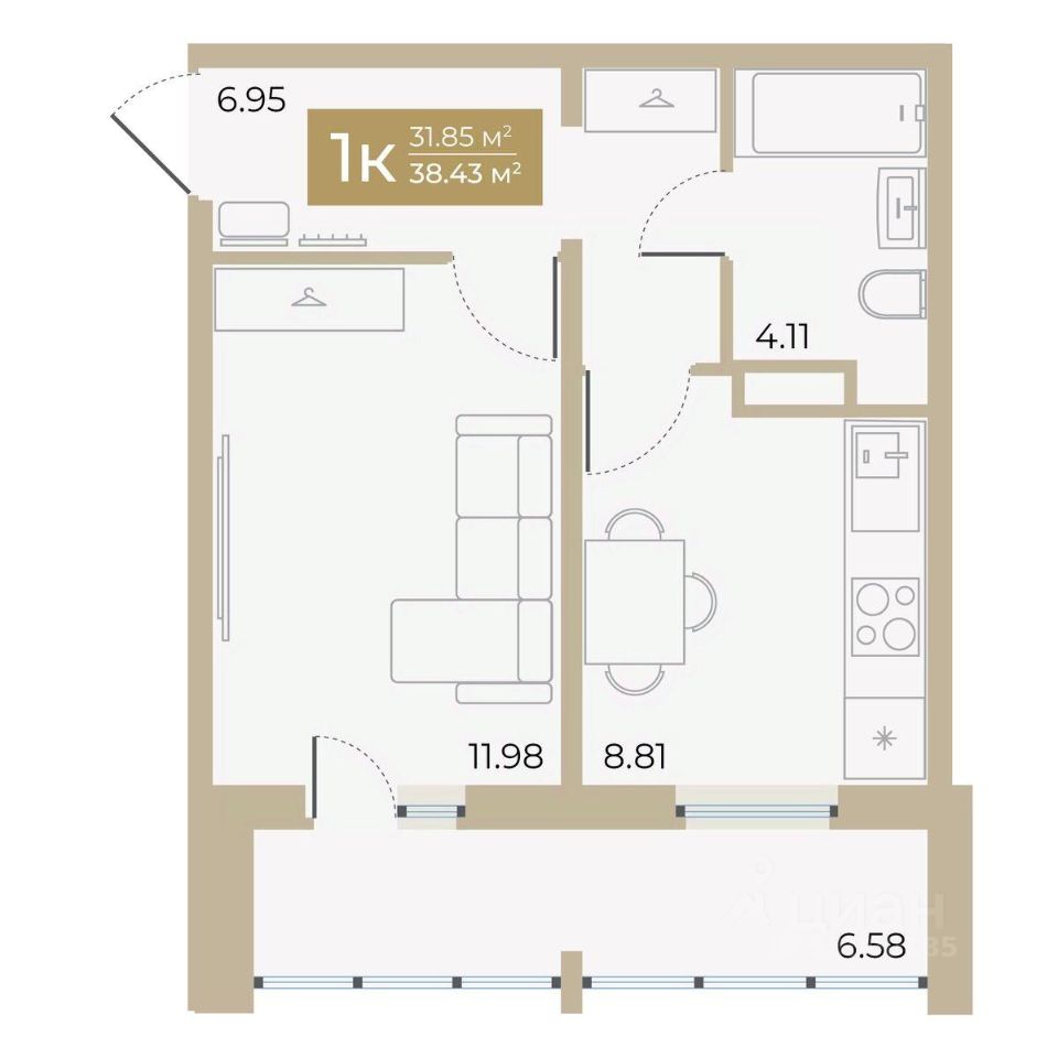 Продаётся 1-комнатная квартира в строящемся доме (Дом 5), срок сдачи: I-кв. 2026, общей площадью 31.85 кв.м., на 13 этаже. Новый жилой комплекс "Спутник-2" от специализированного застройщика "Спутник-2" расположен по адресу: г. Тюмень, по ул. Алматинская.