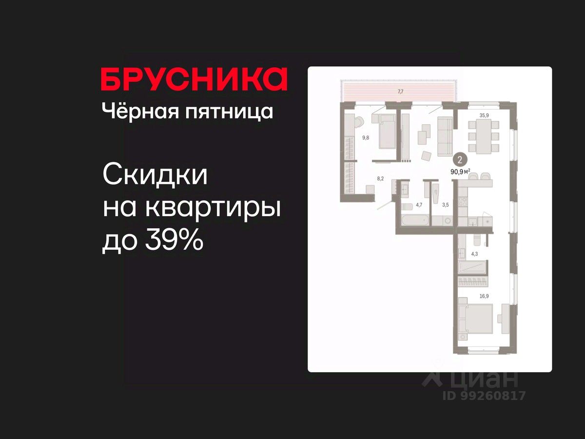 Продается 2-комн. квартира с предчистовой отделкой в Кварталы "На Минской" на 4 этаже. Общая площадь: 90.9 кв.м., жилая: 26.7 кв.м., площадь просторной кухни-гостиной: 35.9 кв.м. Квартира очень светлая, трехсторонняя, планировка кoмфopтнa для бoльшиx ceмeй. В квартире один балкон, два совмещенных санузла. Высота потолков 2.7 м.