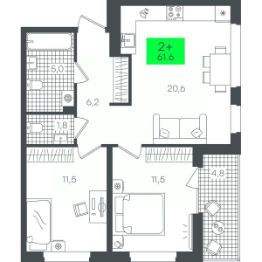 Продаётся 2-комнатная квартира в строящемся доме (В5.4 (Малкова, 19)), срок сдачи: III-кв. 2026, общей площадью 61.65 кв.м., на 2 этаже. Компания 4D приступила к строительству нового жилого комплекса "Гранд квартал". Новый ЖК находится в зеленой зоне Калининского района, южнее микрорайона Тюменская слобода.