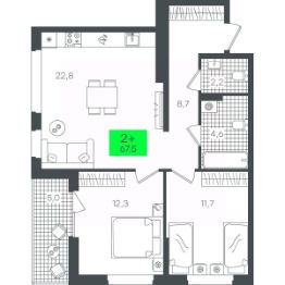 Продаётся 2-комнатная квартира в строящемся доме (В5.4 (Малкова, 19)), срок сдачи: III-кв. 2026, общей площадью 67.56 кв.м., на 3 этаже. Компания 4D приступила к строительству нового жилого комплекса "Гранд квартал". Новый ЖК находится в зеленой зоне Калининского района, южнее микрорайона Тюменская слобода.