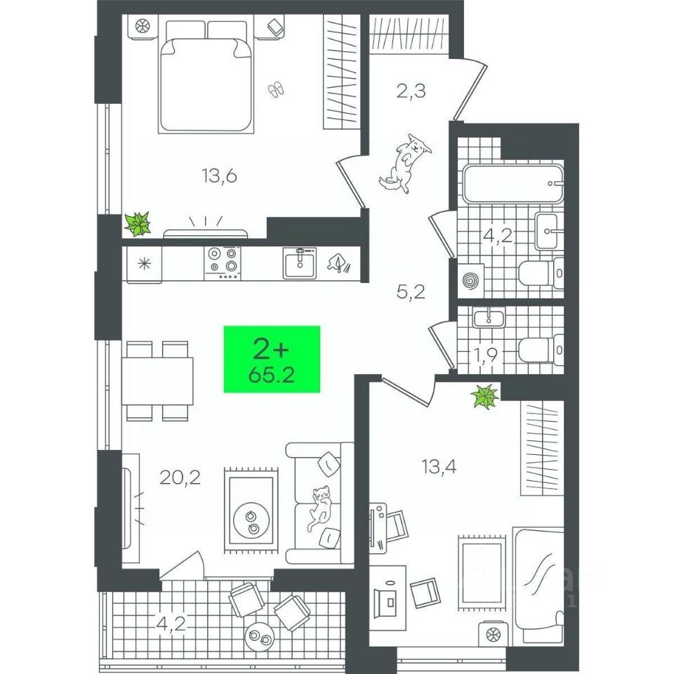 Продаётся 2-комнатная квартира в строящемся доме (1-Д3.2 (Глебова, 10)), срок сдачи: III-кв. 2026, общей площадью 65.27 кв.м., на 3 этаже. Компания 4D приступила к строительству нового жилого комплекса "Гранд квартал". Новый ЖК находится в зеленой зоне Калининского района, южнее микрорайона Тюменская слобода.