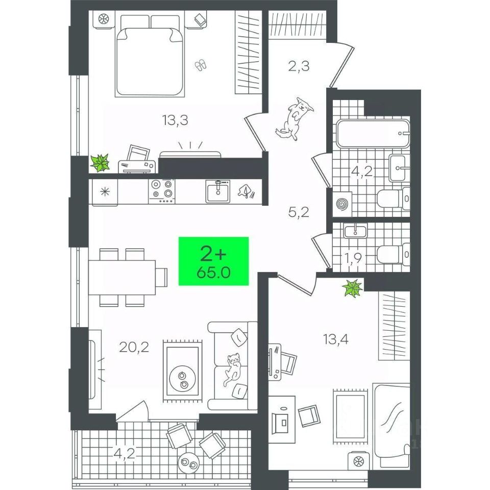 Продаётся 2-комнатная квартира в строящемся доме (1-Д3.2 (Глебова, 10)), срок сдачи: III-кв. 2026, общей площадью 65 кв.м., на 12 этаже. Компания 4D приступила к строительству нового жилого комплекса "Гранд квартал". Новый ЖК находится в зеленой зоне Калининского района, южнее микрорайона Тюменская слобода.