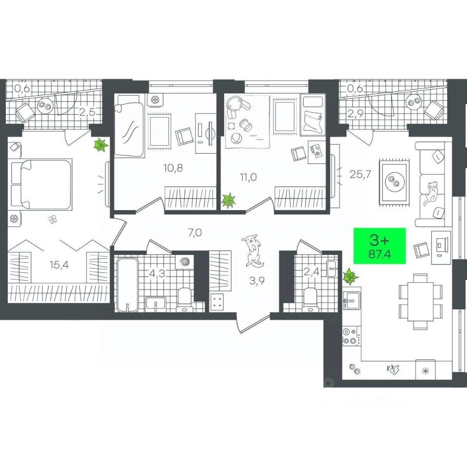 Продаётся 3-комнатная квартира в строящемся доме (1-Д3.1 (Глебова, 10)), срок сдачи: III-кв. 2026, общей площадью 87.48 кв.м., на 12 этаже. Компания 4D приступила к строительству нового жилого комплекса "Гранд квартал". Новый ЖК находится в зеленой зоне Калининского района, южнее микрорайона Тюменская слобода.