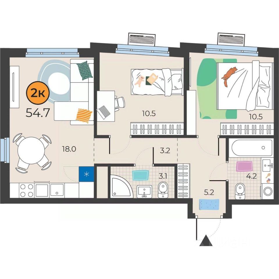 Общая площадь54,7 м²