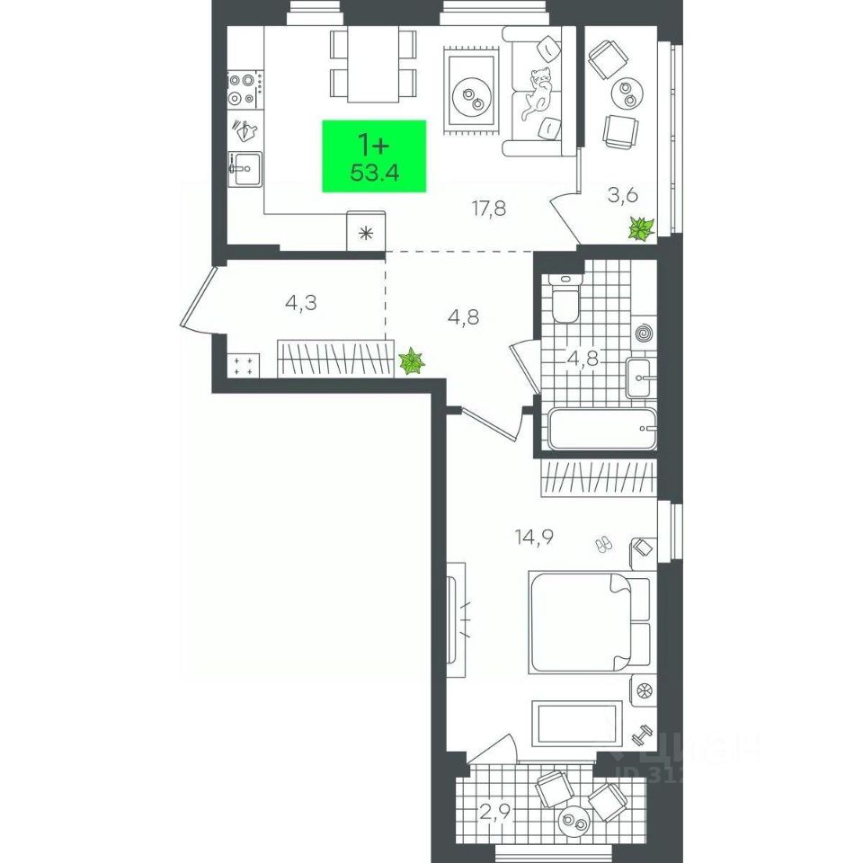 Продаётся 1-комнатная квартира в строящемся доме (1-Д5.1 (Малкова, 5)), срок сдачи: III-кв. 2026, общей площадью 53.47 кв.м., на 8 этаже. Компания 4D приступила к строительству нового жилого комплекса "Гранд квартал". Новый ЖК находится в зеленой зоне Калининского района, южнее микрорайона Тюменская слобода.