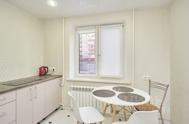 В квартире сделан современный ремонт с натяжными потолками, пластиковыми окнами и тёплыми полами на кухне, балконе, в ванной и туалете.