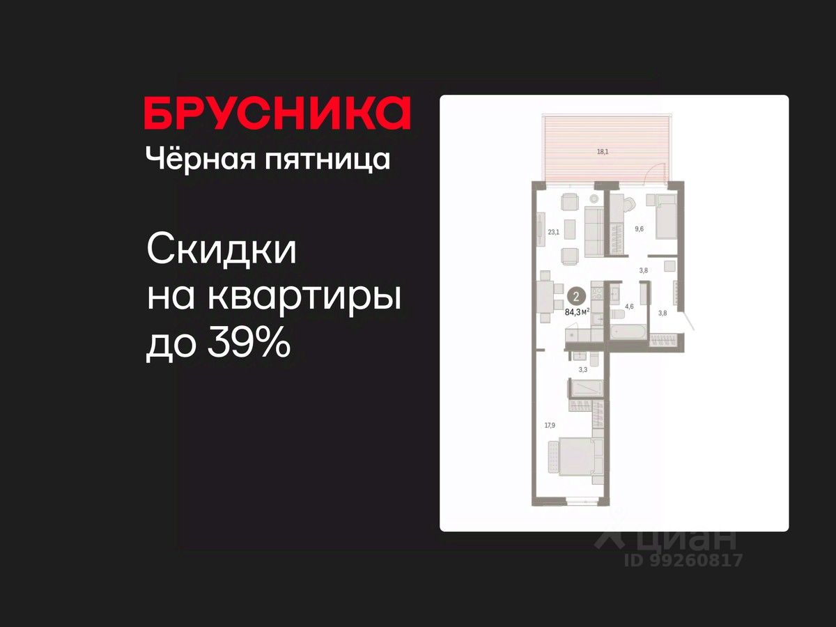 Просторная 2-комн. квартира с предчистовой отделкой в ЖК "Республики 205" на 2 этаже. Общая площадь: 84.3 кв.м. Высота потолков 2.7 м.