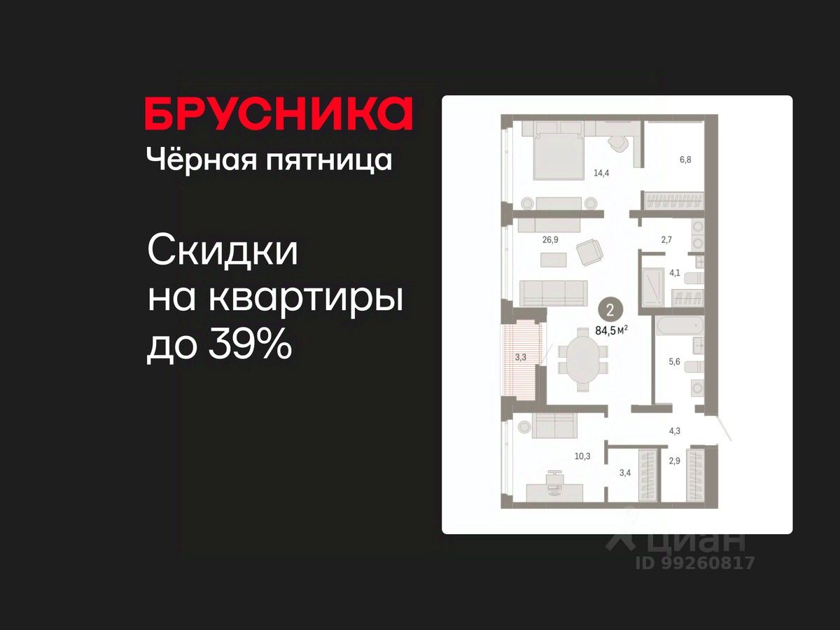 Продается двухкомнатная квартира с предчистовой отделкой в ЖК "Республики 205" на 9 этаже. Общая площадь: 84.46 кв.м. Высота потолков 2.7 м.