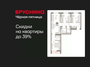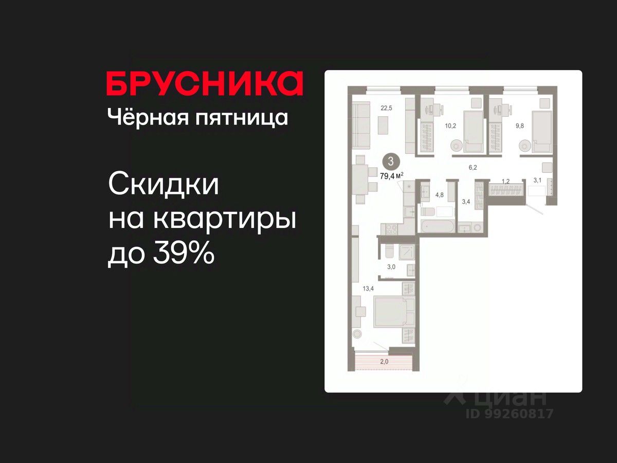 Квартира с кухней-гостиной и тремя спальнями в Октябрьском на Туре. Особенности планировки: гардеробная, вид во двор, лоджия, разнесённые спальни, предчистовая отделка, мастер-спальня, постирочная.