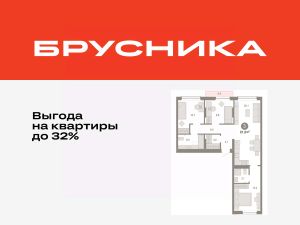 Квартира с кухней-гостиной и тремя спальнями в Октябрьском на Туре. Особенности планировки: гардеробная, вид во двор, разнесённые спальни, предчистовая отделка, мастер-спальня, балкон.