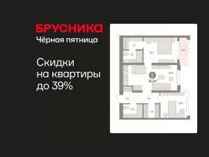 Продается двухкомнатная квартира с предчистовой отделкой в Кварталы "На Минской" на 3 этаже. Общая площадь: 70.33 кв.м., жилая: 23.9 кв.м., площадь просторной кухни-гостиной: 20.8 кв.м. Комнаты изолированные, все окна выходят на одну сторону. В квартире один балкон, два совмещенных санузла. Высота потолков 2.7 м.