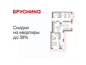 Квартира с кухней-гостиной и двумя спальнями в кварталах "На Минской". Особенности планировки: балкон, гардеробная, мастер-спальня, постирочная, предчистовая отделка, разнесённые спальни, терраса на крыше.
