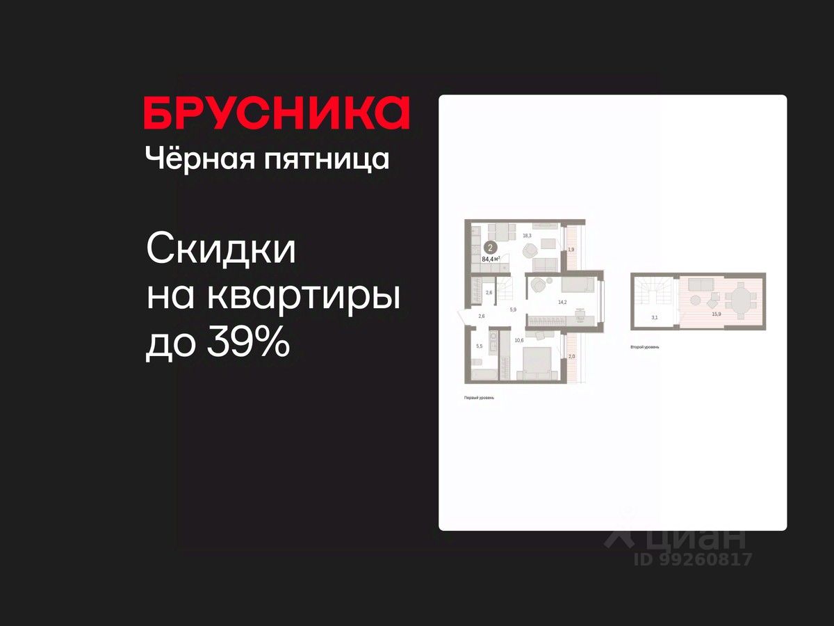 Двухуровневая квартира с кухней-гостиной и двумя спальнями в жилом районе "Зарека". Особенности планировки: двухуровневая, разнесённые спальни, предчистовая отделка, летняя кухня на крыше, терраса, терраса на крыше.
