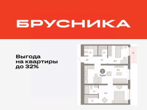 Квартира с кухней-гостиной и двумя спальнями в жилом районе "Зарека". Особенности планировки: гардеробная, разнесённые спальни, предчистовая отделка, мастер-спальня, балкон.