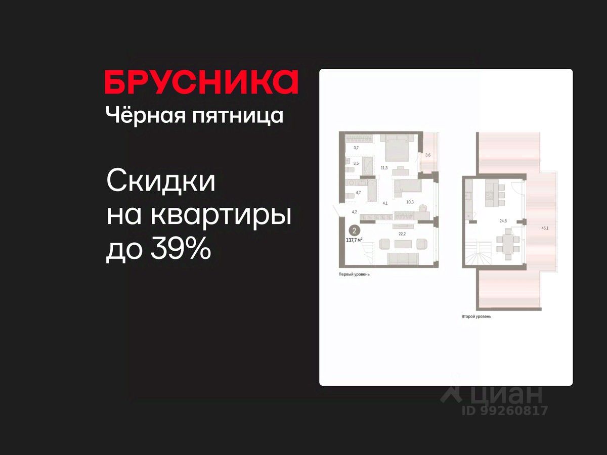 2-комн. квартира с предчистовой отделкой в ЖК "Республики 205" на 8 этаже. Общая площадь: 137.67 кв.м. Высота потолков 2.7 м.