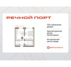 Квартира с кухней-гостиной и одной спальней в жилом районе "Речной порт". Особенности планировки: гардеробная, предчистовая отделка, балкон.