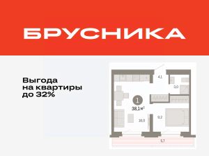 Квартира с кухней-гостиной и одной спальней в жилом районе "Речной порт". Особенности планировки: предчистовая отделка, терраса.
