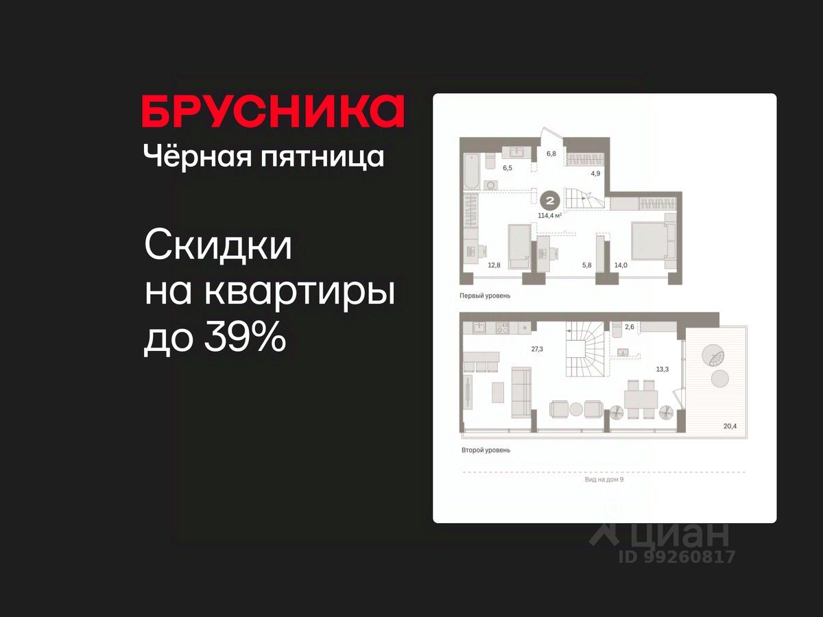 Квартира с кухней-гостиной и двумя спальнями в жилом районе "Речной порт". Особенности планировки: окна в пол, без отделки, свободная планировка, терраса на крыше.