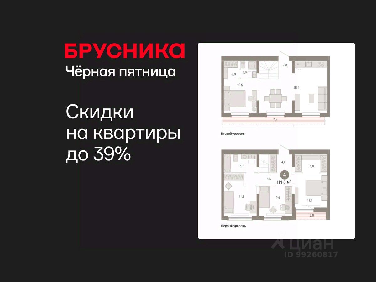 Двухуровневая квартира с кухней-гостиной и четырьмя спальнями в Октябрьском на Туре. Особенности планировки: гардеробная, без отделки, двухуровневая, свободная планировка, лоджия, разнесённые спальни, мастер-спальня, терраса на крыше.