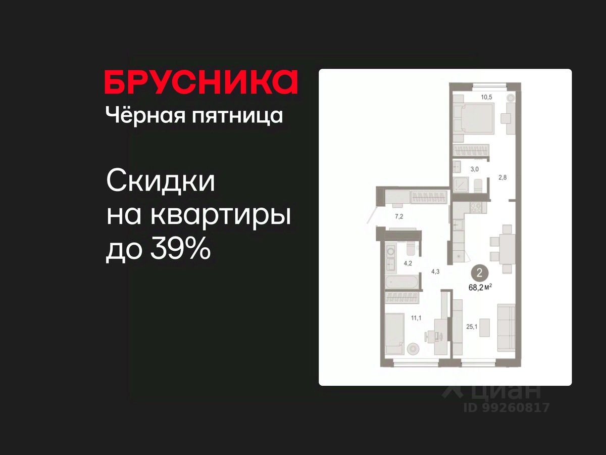 Квартира с кухней-гостиной и двумя спальнями в Октябрьском на Туре. Особенности планировки: вид во двор, разнесённые спальни, предчистовая отделка, мастер-спальня.