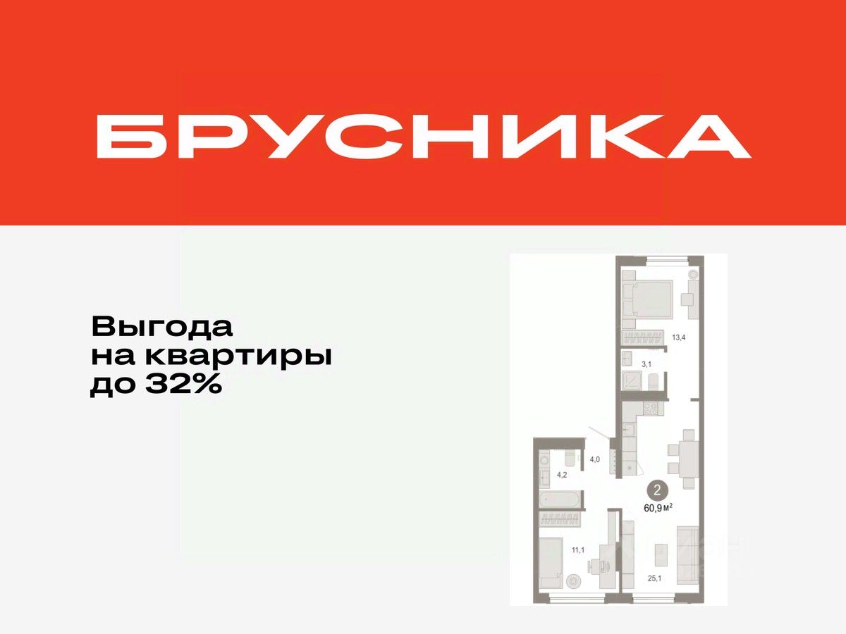 Квартира с кухней-гостиной и двумя спальнями в Октябрьском на Туре. Особенности планировки: вид во двор, разнесённые спальни, предчистовая отделка, мастер-спальня.