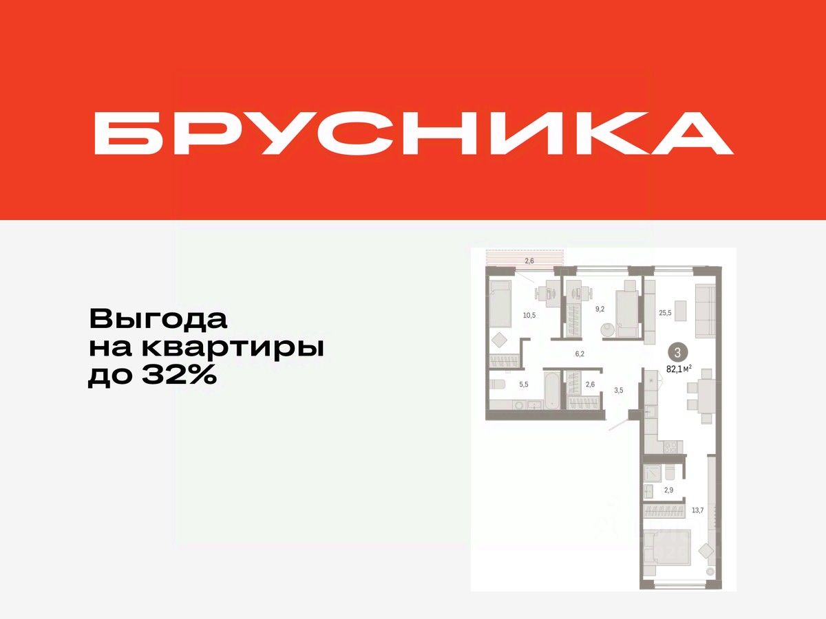 Квартира с кухней-гостиной и тремя спальнями в Октябрьском на Туре. Особенности планировки: вид во двор, разнесённые спальни, предчистовая отделка, мастер-спальня, балкон.