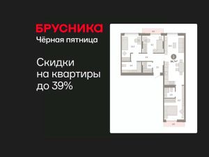 Квартира с кухней-гостиной и тремя спальнями в Октябрьском на Туре. Особенности планировки: вид во двор, разнесённые спальни, предчистовая отделка, мастер-спальня, балкон.