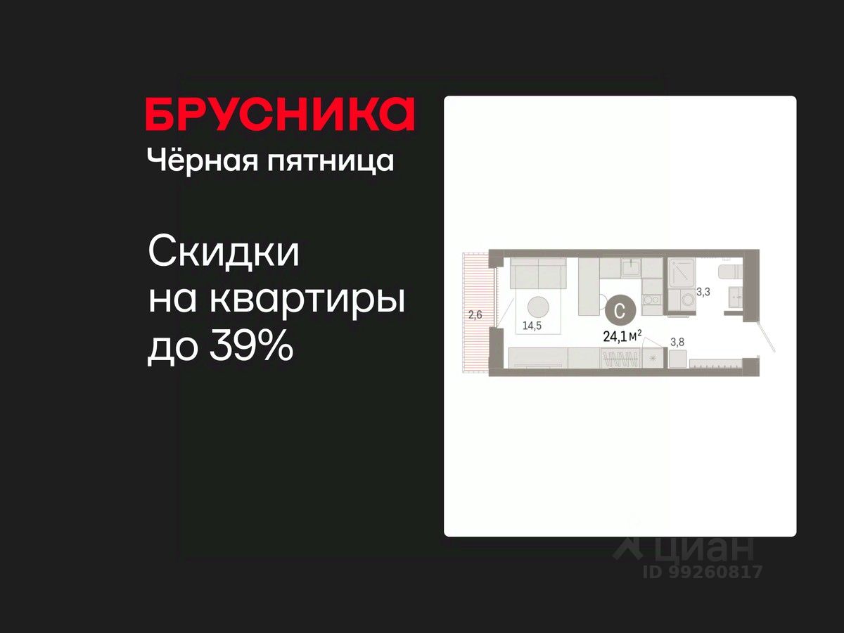 Студия в Октябрьском на Туре. Особенности планировки: предчистовая отделка, балкон.