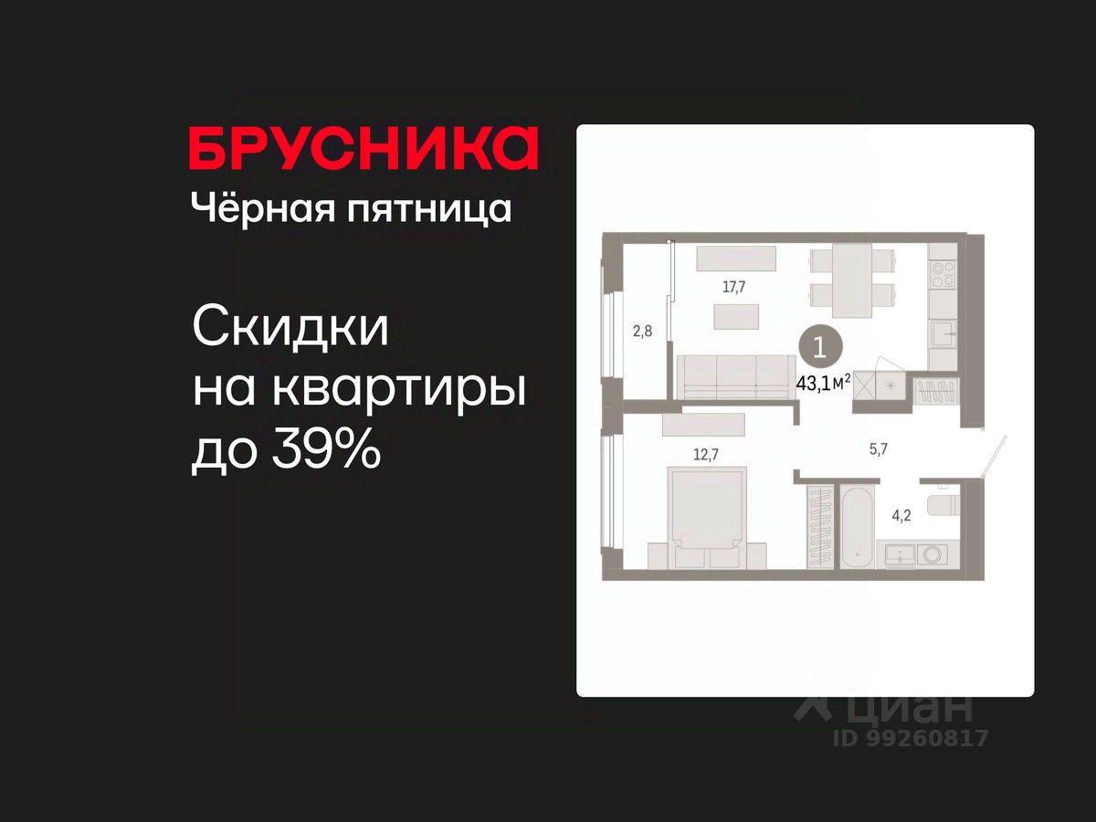 Квартира с кухней-гостиной и одной спальней в Октябрьском на Туре. Особенности планировки: тёплая лоджия, предчистовая отделка.