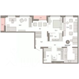 Квартира с кухней-гостиной и тремя спальнями в Октябрьском на Туре. Особенности планировки: без отделки, свободная планировка, лоджия, мастер-спальня, постирочная.