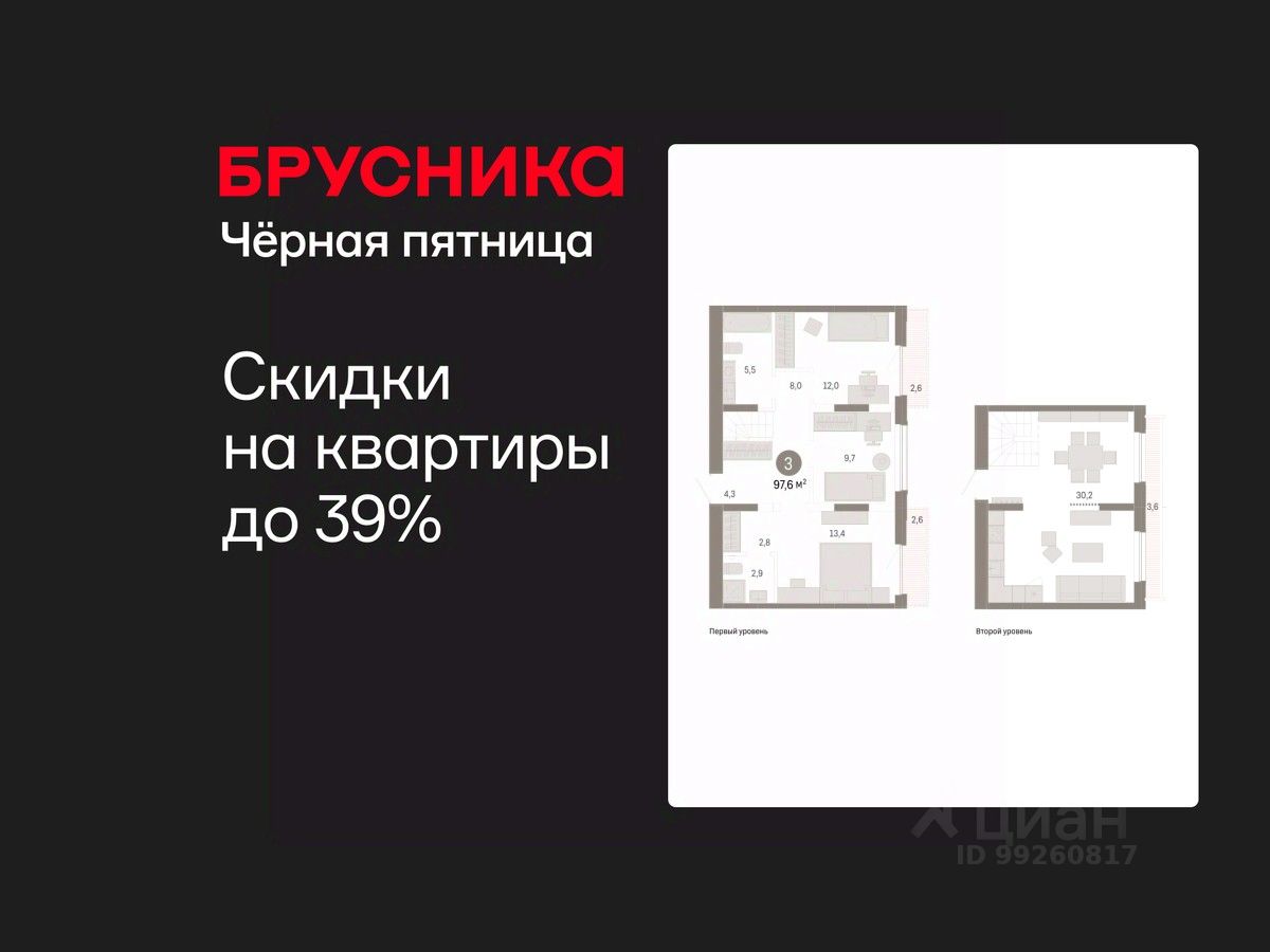 Квартира с кухней-гостиной и тремя спальнями в Октябрьском на Туре. Особенности планировки: без отделки, панорамное остекление, свободная планировка, мастер-спальня, балкон, терраса на крыше.