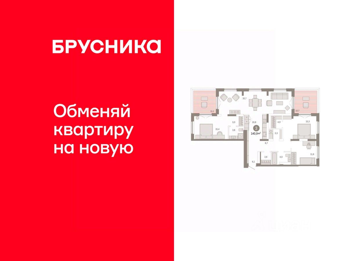 Квартира с кухней-гостиной и тремя спальнями в Октябрьском на Туре. Особенности планировки: вид на реку, мастер-спальня, постирочная, разнесённые спальни, свободная планировка, терраса, терраса на крыше.