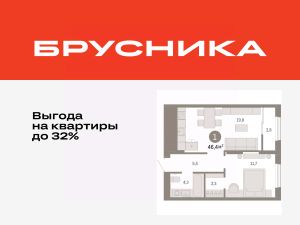 Квартира с кухней-гостиной и одной спальней в Октябрьском на Туре. Особенности планировки: вид во двор, тёплая лоджия, предчистовая отделка.