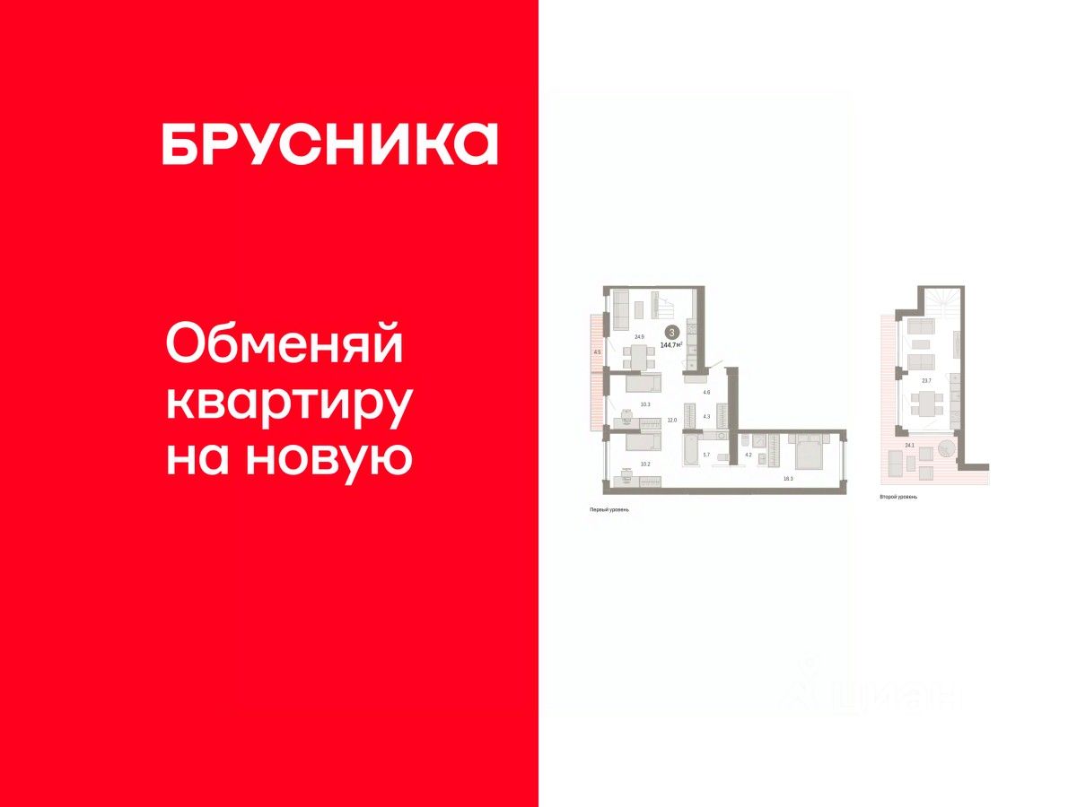 Двухуровневая квартира с кухней-гостиной и тремя спальнями в Октябрьском на Туре. Особенности планировки: балкон, двухуровневая, разнесённые спальни, свободная планировка, терраса на крыше.