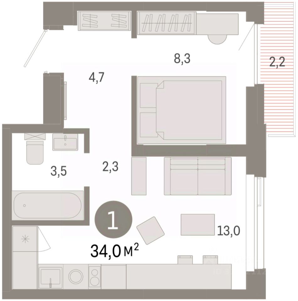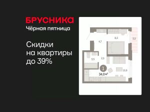 Однокомнатная квартира с предчистовой отделкой в ЖК "Зарека" на 6 этаже. Общая площадь: 34.03 кв.м., жилая: 8.3 кв.м., площадь просторной кухни-гостиной: 13 кв.м. Все окна выходят на одну сторону. В квартире один балкон, один совмещенный санузел. Высота потолков 2.7 м.