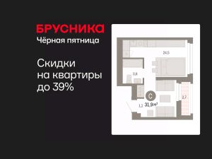 1-комн. студия с предчистовой отделкой в ЖК "Зарека" на 13 этаже. Общая площадь: 31.49 кв.м., площадь гостиной 24.5 кв.м., из которых 10 кв.м. выделено под кухонную зону. Все окна выходят на одну сторону. В квартире одна лоджия, один совмещенный санузел. Высота потолков 2.7 м.