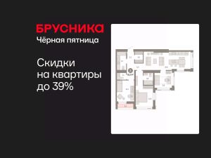 Квартира с кухней-гостиной и тремя спальнями в жилом районе "Зарека". Особенности планировки: гардеробная, предчистовая отделка, мастер-спальня, постирочная, терраса на крыше.