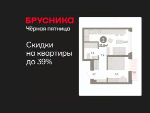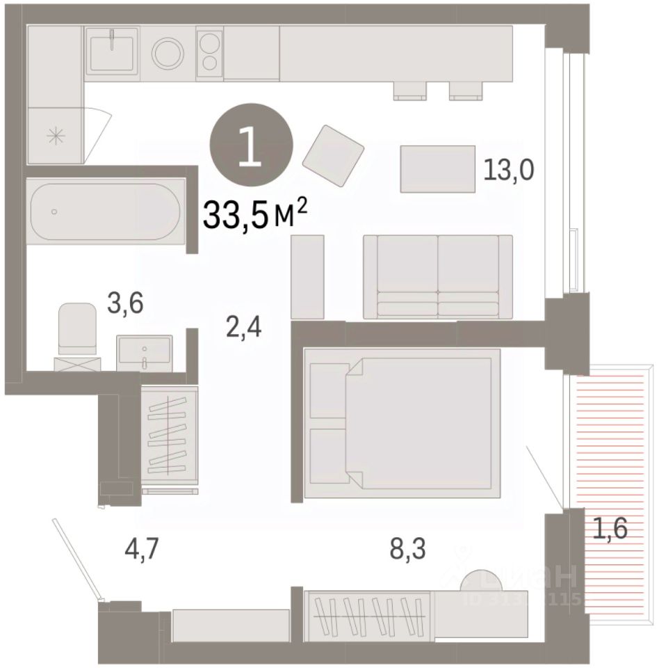 Однокомнатная квартира с предчистовой отделкой в ЖК "Зарека" на 16 этаже. Общая площадь: 33.53 кв.м., жилая: 8.3 кв.м., площадь просторной кухни-гостиной: 13 кв.м. Все окна выходят на одну сторону. В квартире один балкон, один совмещенный санузел. Высота потолков 2.7 м.