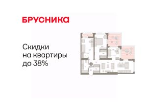 Квартира с кухней-гостиной и тремя спальнями в жилом районе "Зарека". Особенности планировки: предчистовая отделка.