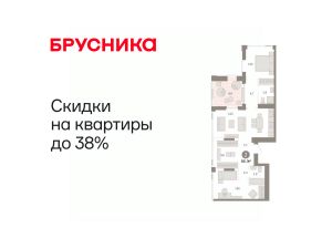 Квартира с кухней-гостиной и двумя спальнями в жилом районе "Зарека". Особенности планировки: окно в коридоре, разнесённые спальни, свободная планировка.