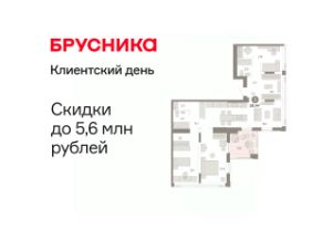 Квартира с кухней-гостиной и тремя спальнями в жилом районе "Зарека". Особенности планировки: предчистовая отделка.