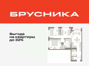 Квартира с кухней-гостиной и двумя спальнями в жилом районе "Зарека". Особенности планировки: гардеробная, предчистовая отделка, мастер-спальня, терраса на крыше.