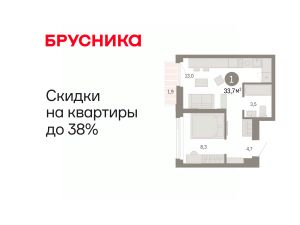Однокомнатная квартира с предчистовой отделкой в ЖК "Зарека" на 14 этаже. Общая площадь: 33.71 кв.м., жилая: 8.3 кв.м., площадь просторной кухни-гостиной: 13 кв.м. Все окна выходят на одну сторону. В квартире один балкон, один совмещенный санузел. Высота потолков 2.7 м.