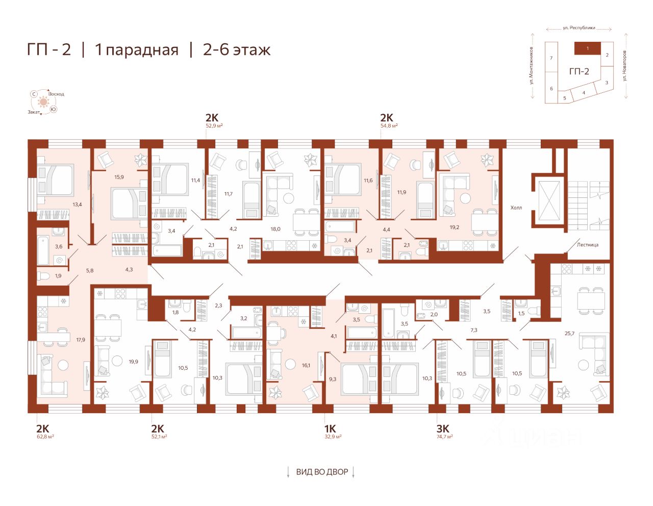 Продаётся 3-комнатная квартира в строящемся доме (ГП-2 (Новаторов, 30)), срок сдачи: IV-кв. 2025, общей площадью 74.67 кв.м., на 6 этаже. Новый жилой комплекс "Новатор" от застройщика ГК "СБК" расположен по адресу: г. Тюмень по ул. Новаторов.