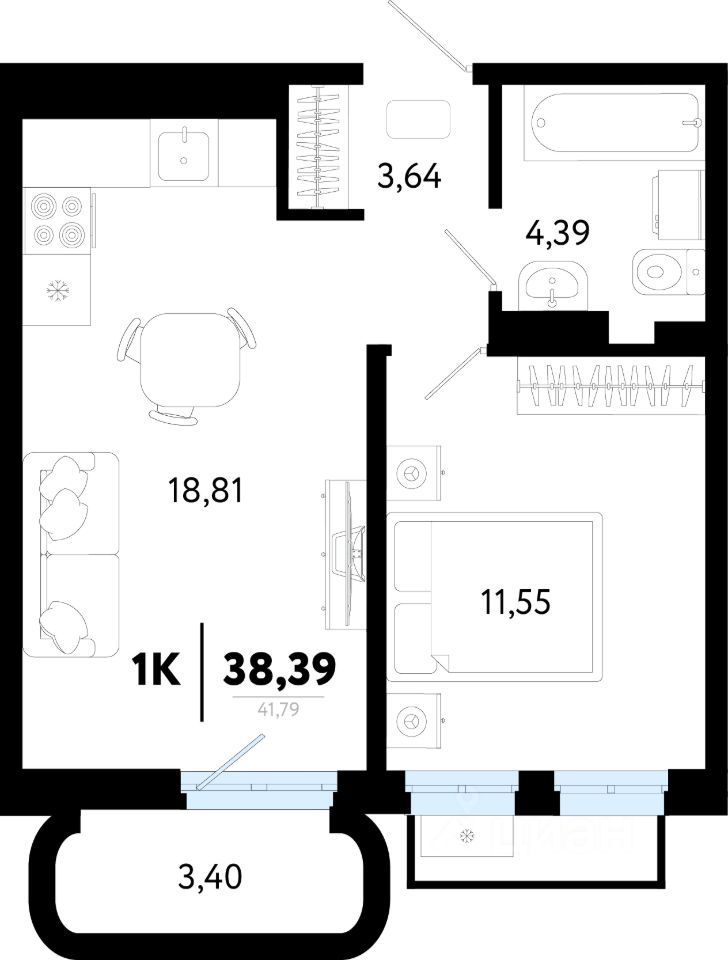 Общая площадь38,32 м²
