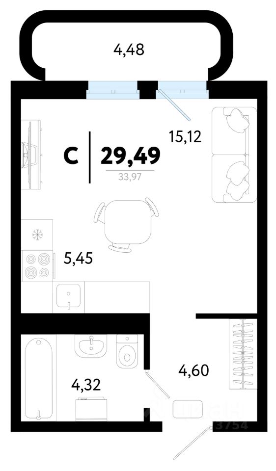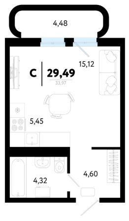 Общая площадь29,49 м²