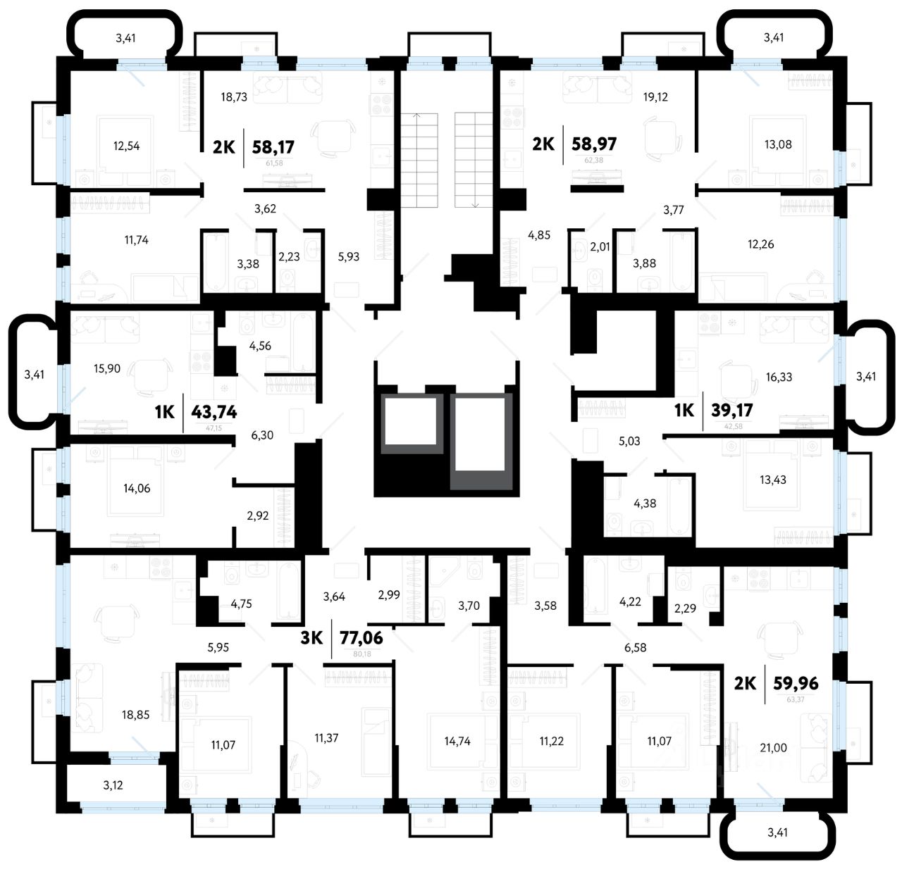 Общая площадь58,97 м²