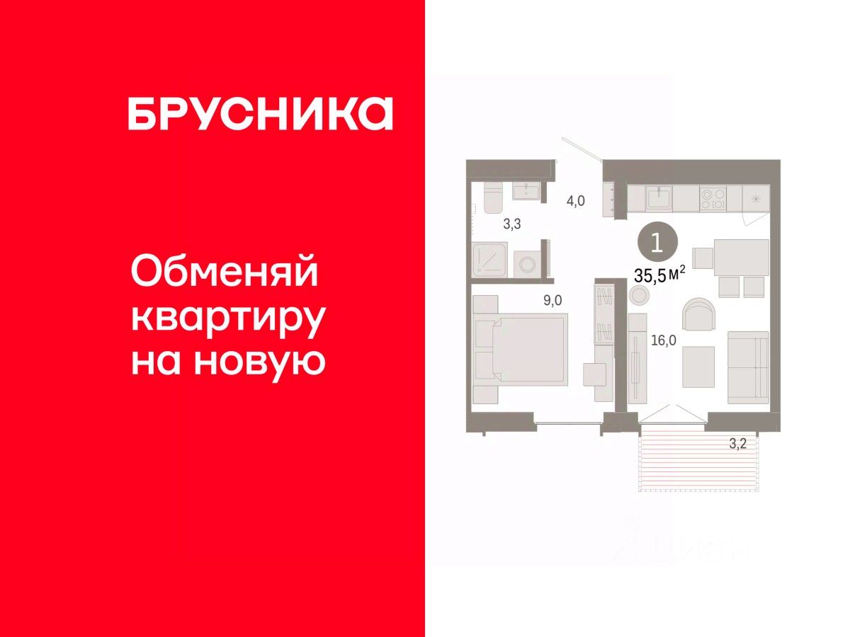 Просторная 1-комн. квартира с предчистовой отделкой в ЖК "Республики 205" на 9 этаже. Общая площадь: 35.47 кв.м., жилая: 9 кв.м., площадь просторной кухни-гостиной: 16 кв.м. Все окна выходят на одну сторону. В квартире один балкон, один совмещенный санузел. Высота потолков 2.7 м.