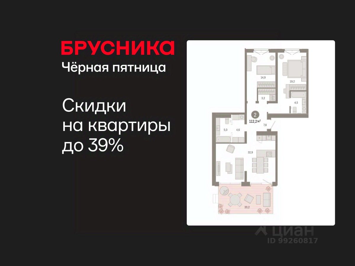 2-комн. квартира от застройщика с предчистовой отделкой в Кварталы "На Минской" на 2 этаже. Общая площадь: 112.19 кв.м. Высота потолков 2.7 м.