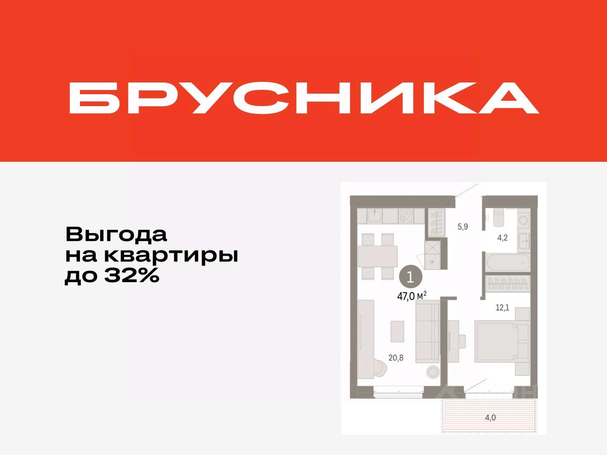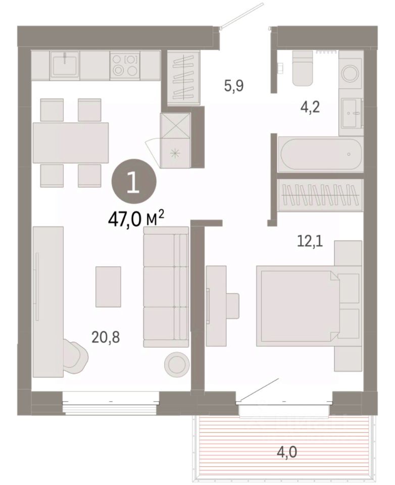Квартира с кухней-гостиной и одной спальней в кварталах "На Минской". Особенности планировки: предчистовая отделка, балкон.